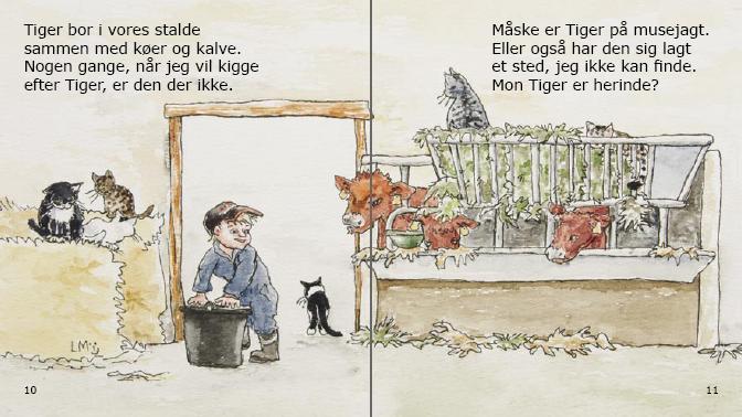 Børnebog skrevet på rim om drengen Valdemar, der har sin egen kat. Katten jager mus og rotter, så de ikke æder køernes foder. Den fanger også fugle og klatrer i træer. Om natten er det hankattene, der larmer. Valdemar fodrer kattene i stalden. En dag er Valdemars elskede kat Tiger væk. Valdemar må ud og lede…