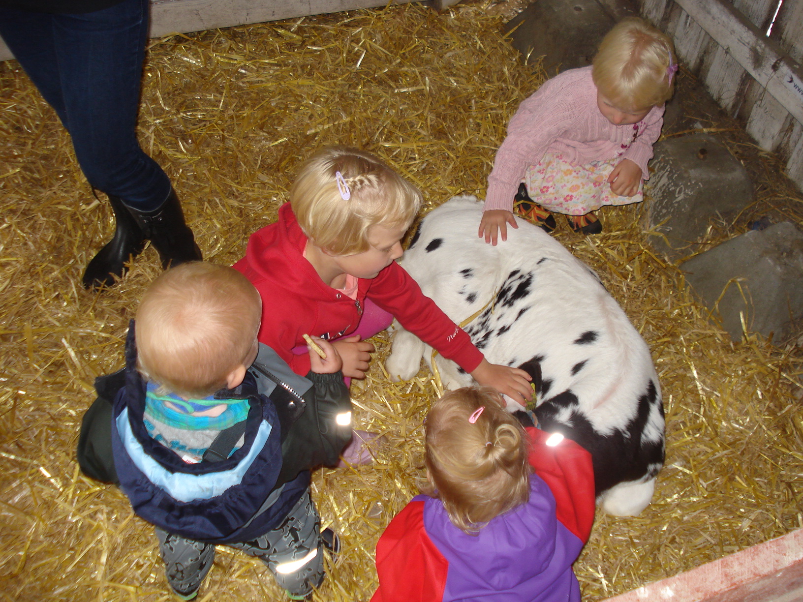 Klappekalven hyggede sig med de mange besøgende børn.