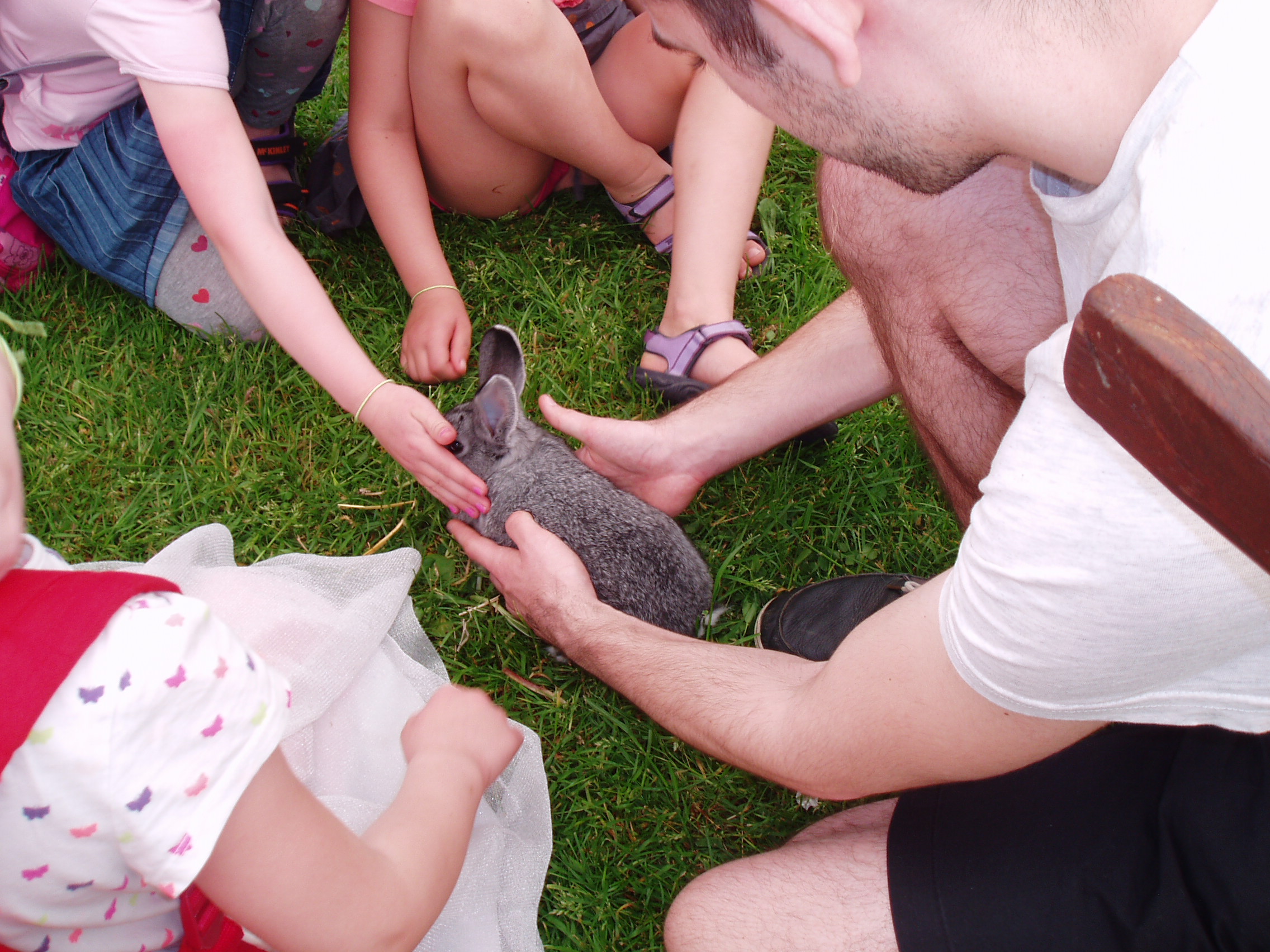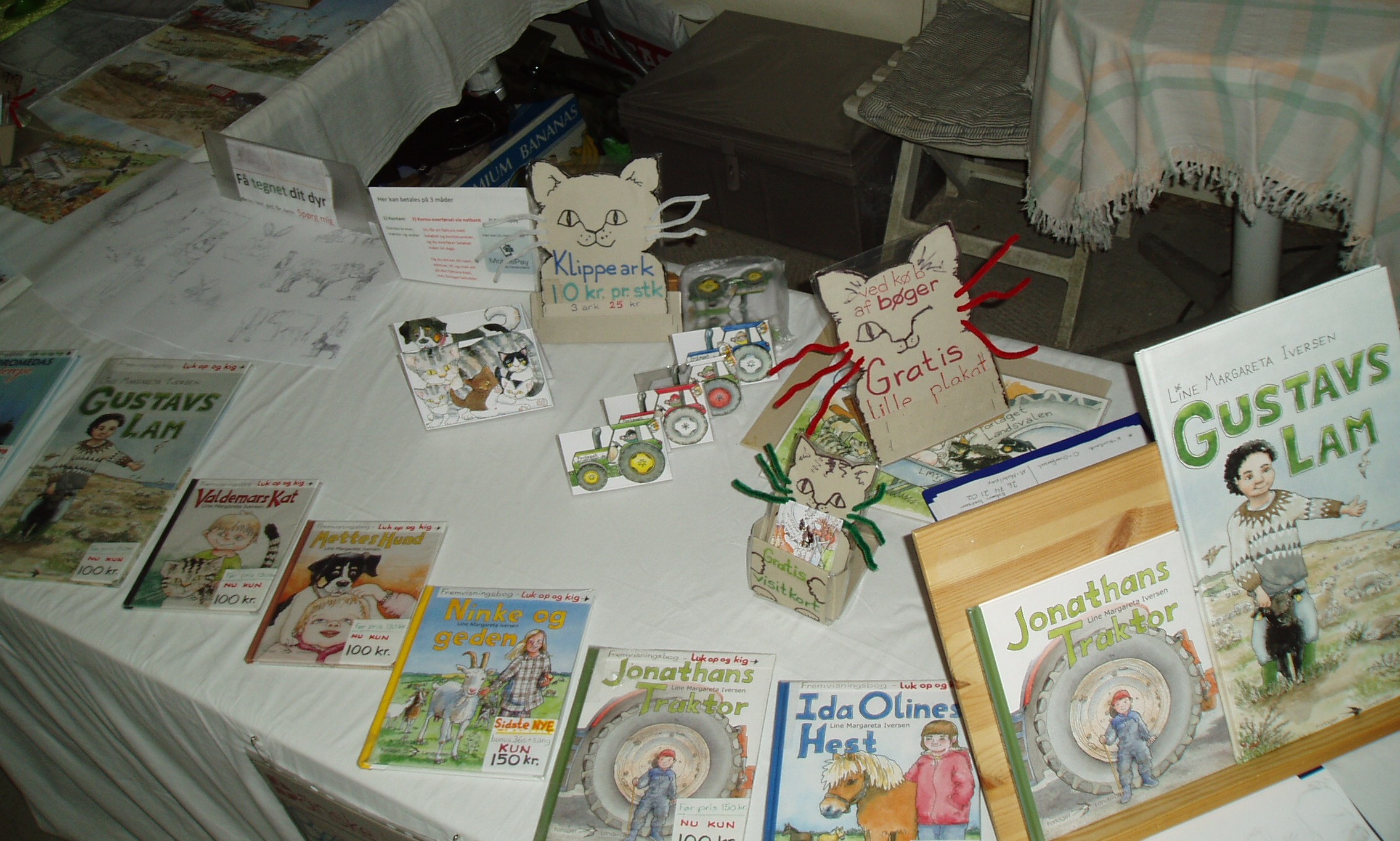 I år havde Line fået lov at være i Stald 24, huset med kaninerne. Her vrimlede det med børn og kaniner, og et hjørne med hamstere. Rigtig dansk sommervejr med hæftige byger, som fik folk til at komme ind og se hopkaniner og komme forbi bøgerne.